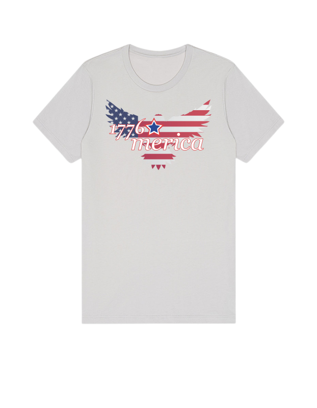Show your patriotism in style! This men’s essential features a crew neck, tailored fit, and is crafted from incredibly soft, proprietary Airlume combed and ring-spun cotton. Designed for comfort with a smooth surface, it’s perfect for bold designs. This 1776 Merica tee features a distressed American flag design, perfect for showing off your freedom-loving spirit