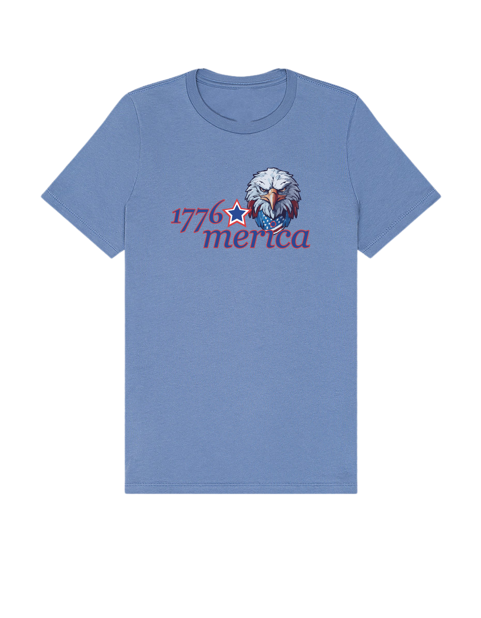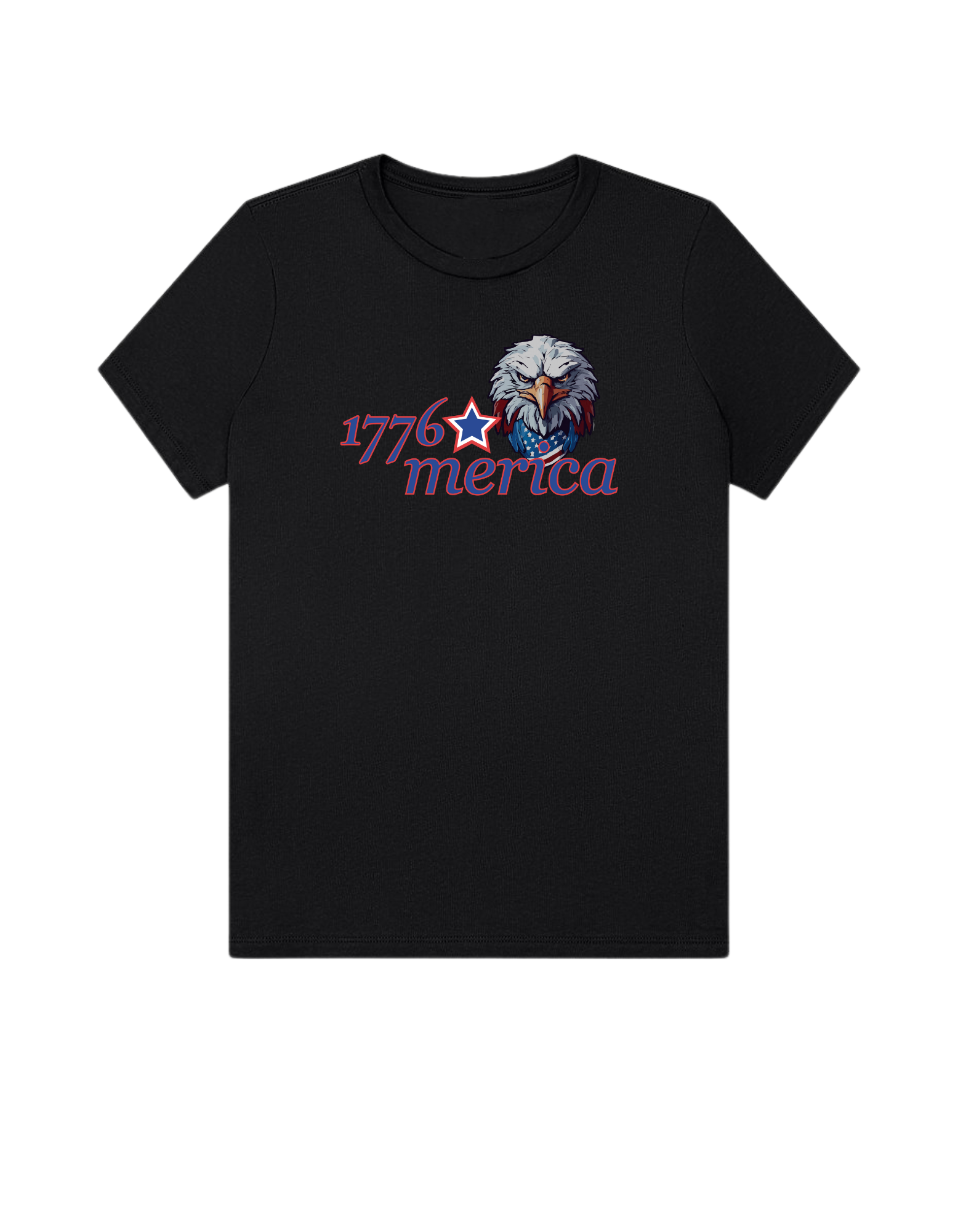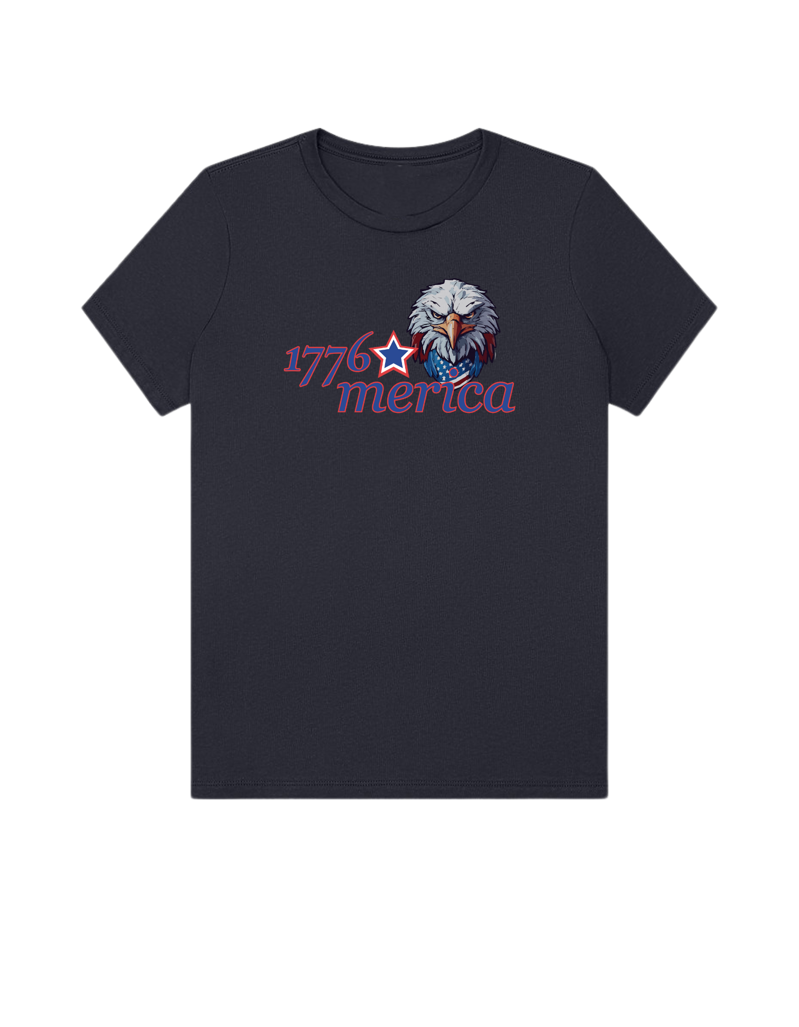 Part of our relaxed collection, this women’s fitted jersey t-shirt features a crew neck, short sleeves, and a contemporary, looser fit for effortless style. Made from super-soft 100% Airlume cotton, it feels amazing all day long with a super-smooth surface. This 1776 Merica tee features a bold, patriotic eagle design that embodies strength, pride, and American spirit.