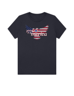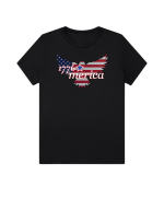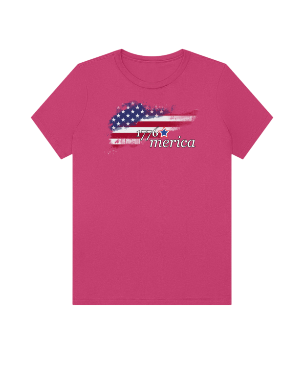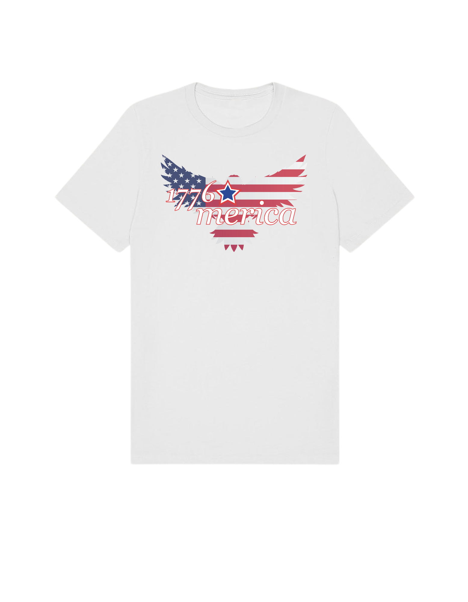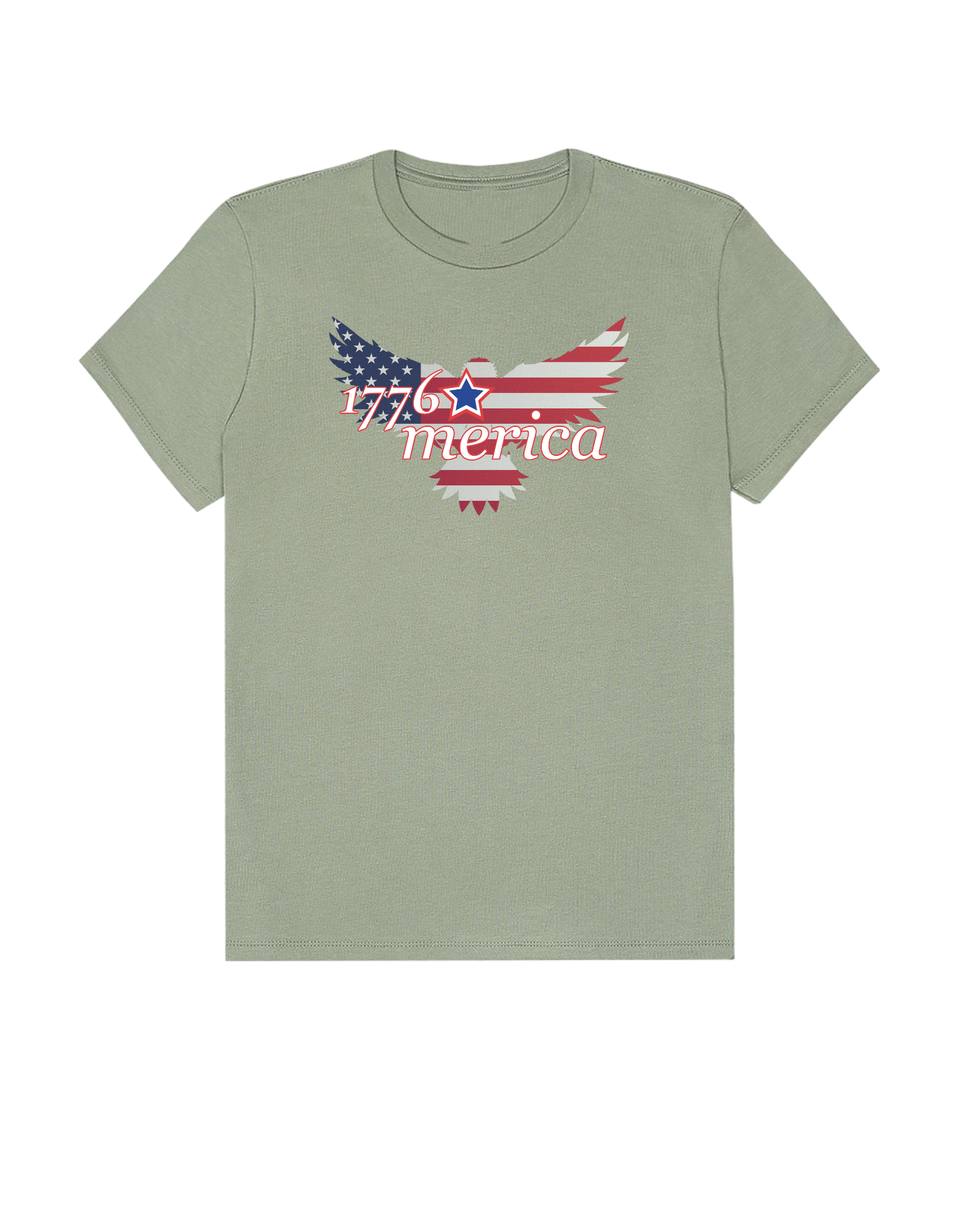 Part of our relaxed collection, this women’s fitted jersey t-shirt features a crew neck, short sleeves, and a contemporary, looser fit for effortless style. Made from super-soft 100% Airlume cotton, it feels amazing all day long with a super-smooth surface. This 1776 Merica tee features a patriotic eagle silhouette filled with stars and stripes—perfect for everyday American pride.