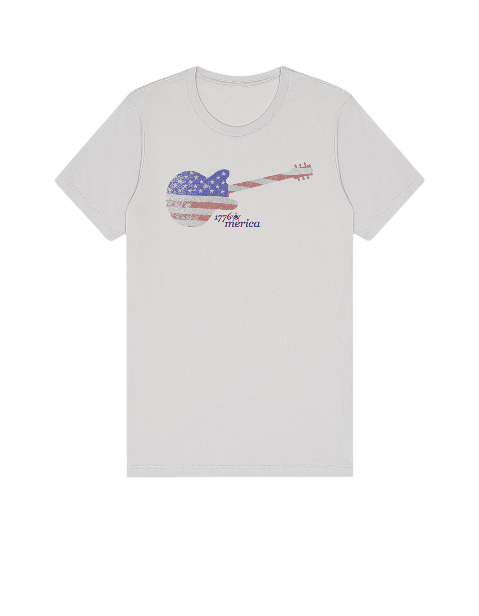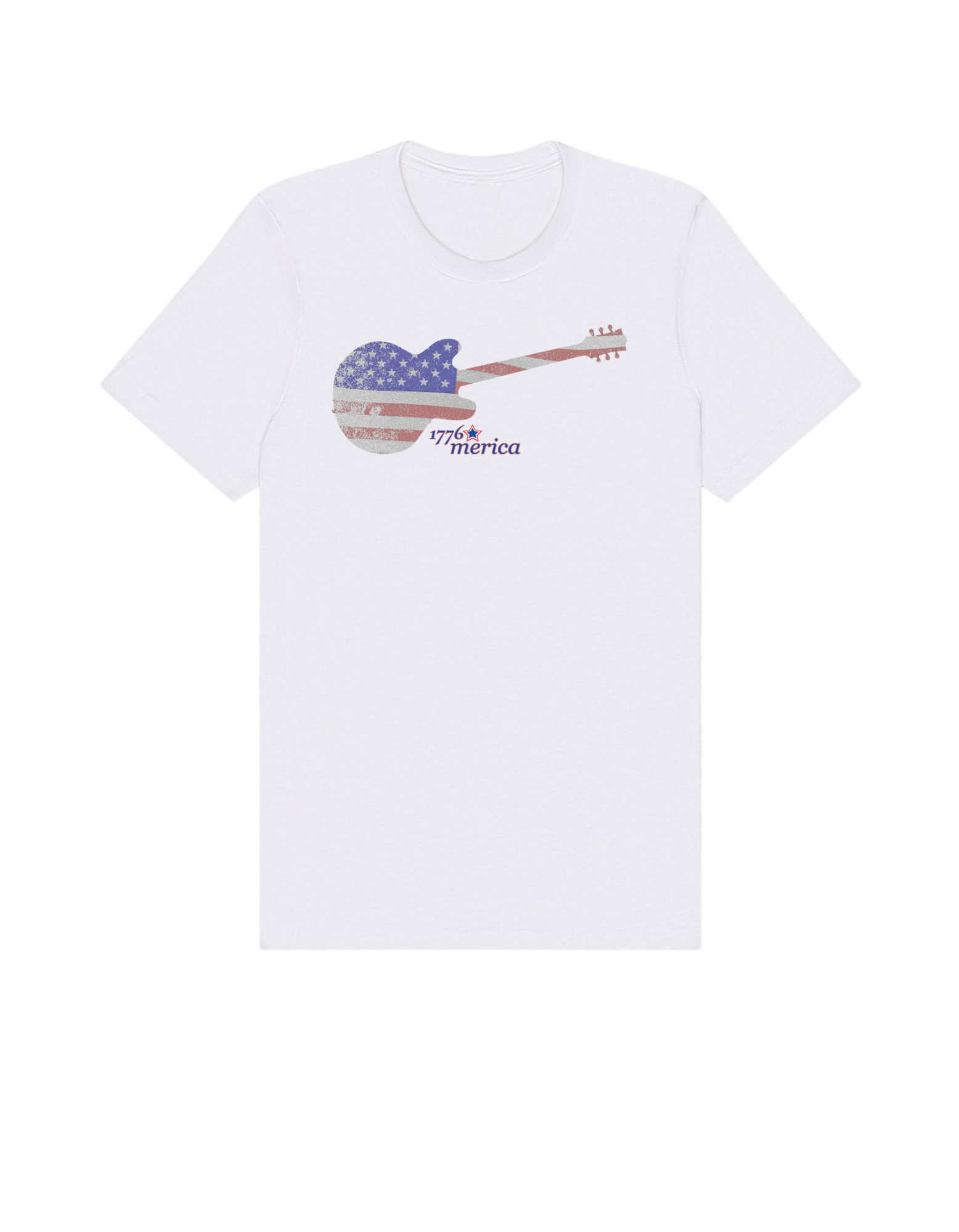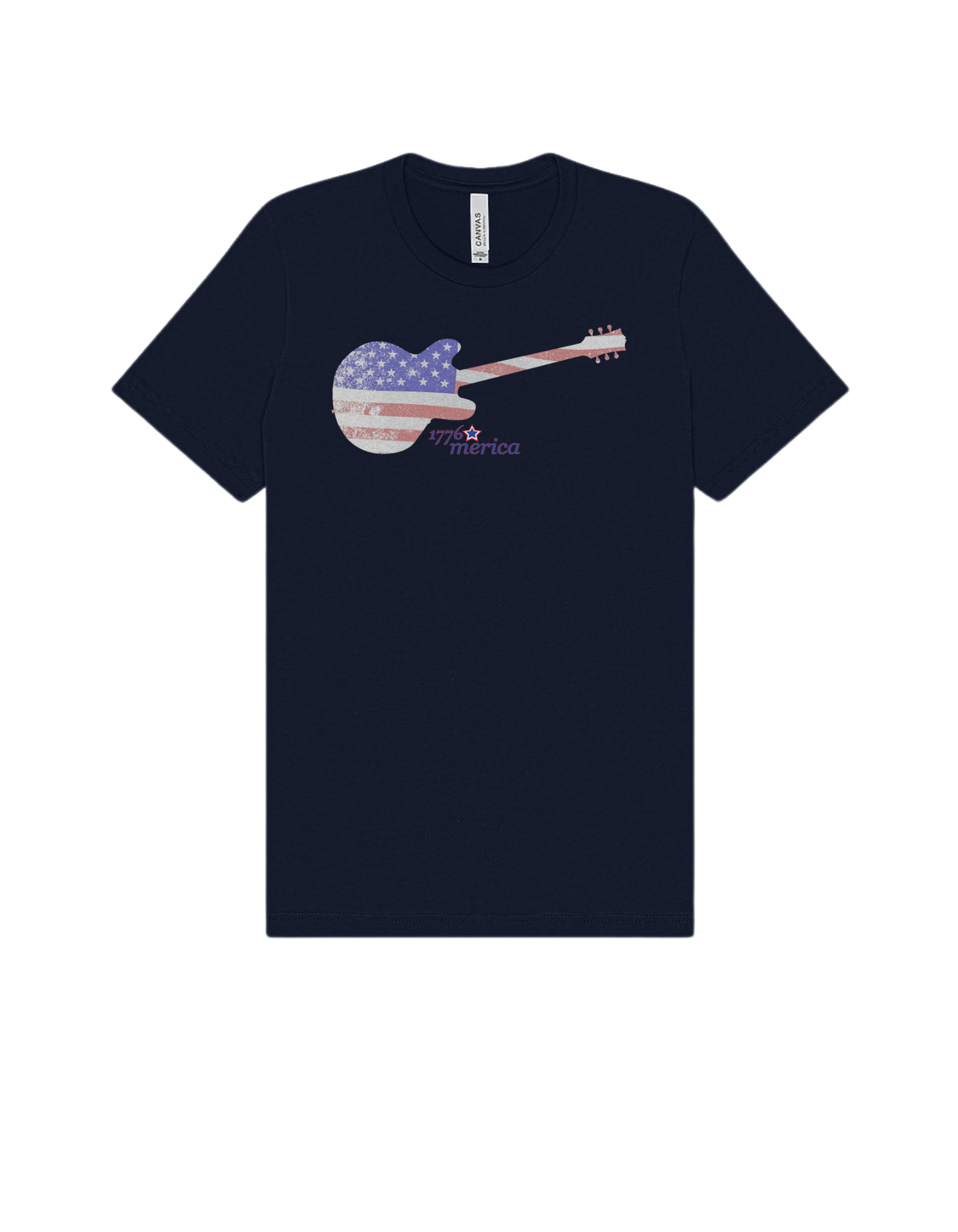 Show your patriotism in style! This men’s essential features a crew neck, tailored fit, and is crafted from incredibly soft, proprietary Airlume combed and ring-spun cotton. Designed for comfort with a smooth surface, it’s perfect for bold designs. This 1776 Merica tee features a vintage flag-print guitar—perfect for patriots who love their
