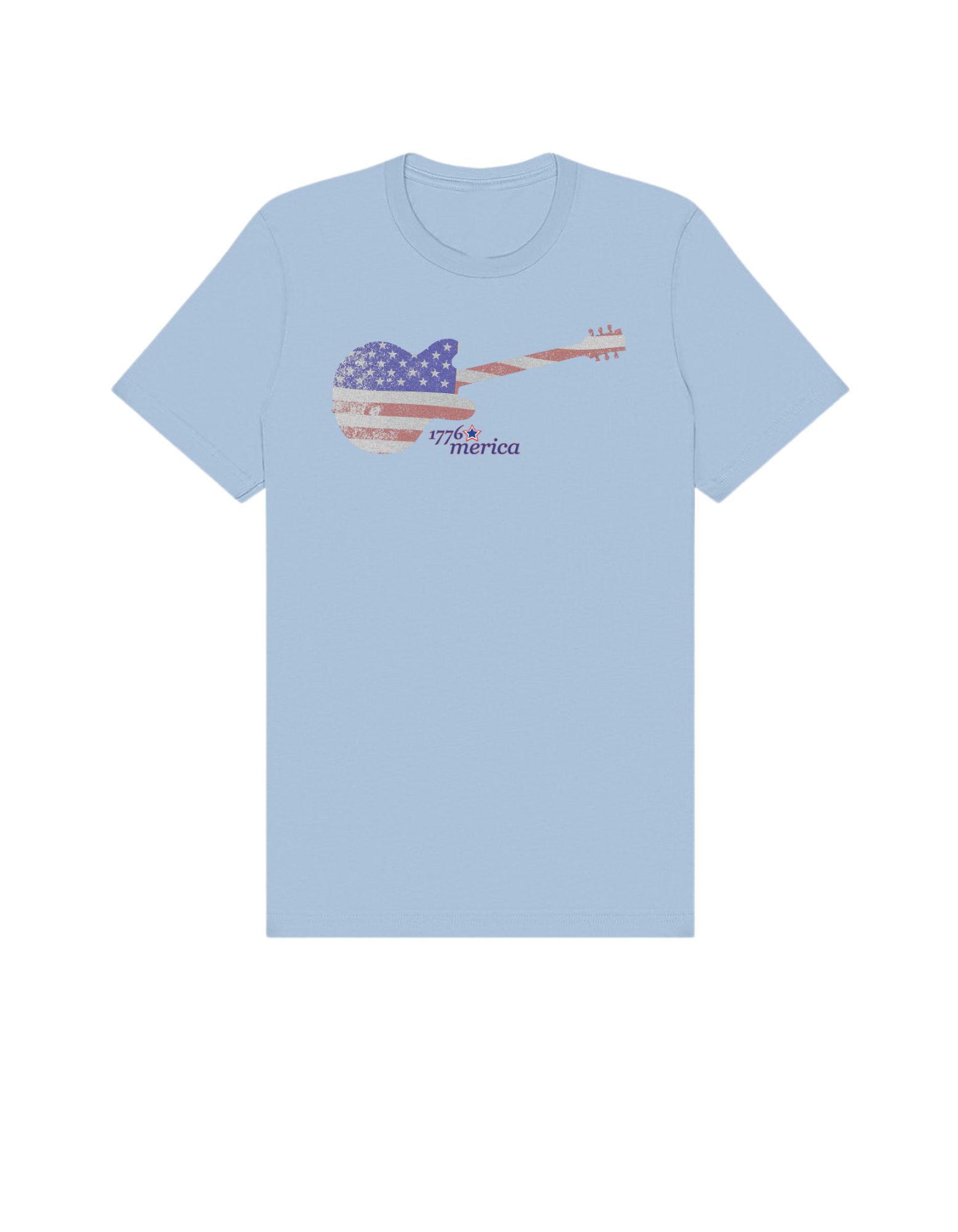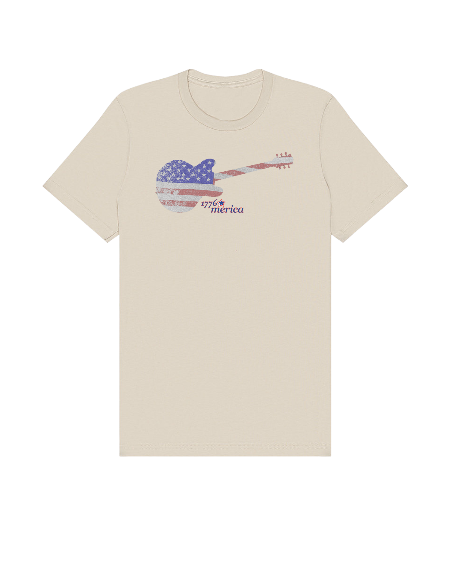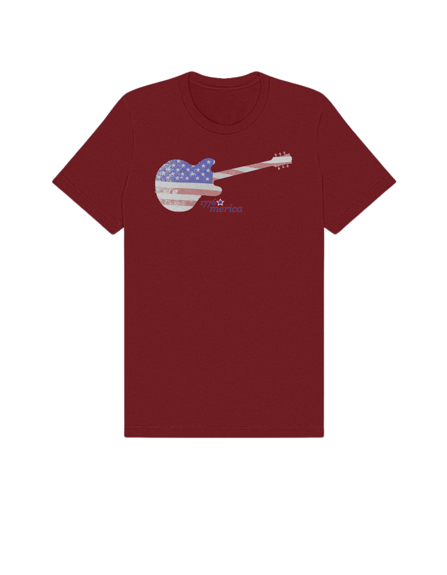 Show your patriotism in style! This men’s essential features a crew neck, tailored fit, and is crafted from incredibly soft, proprietary Airlume combed and ring-spun cotton. Designed for comfort with a smooth surface, it’s perfect for bold designs. This 1776 Merica tee features a vintage flag-print guitar—perfect for patriots who love their