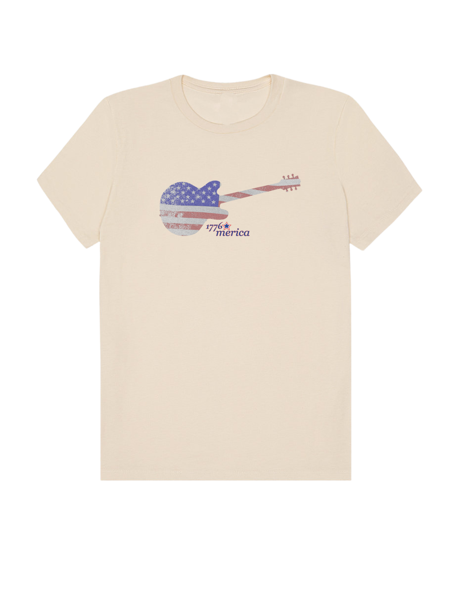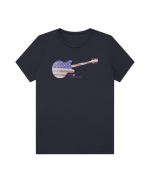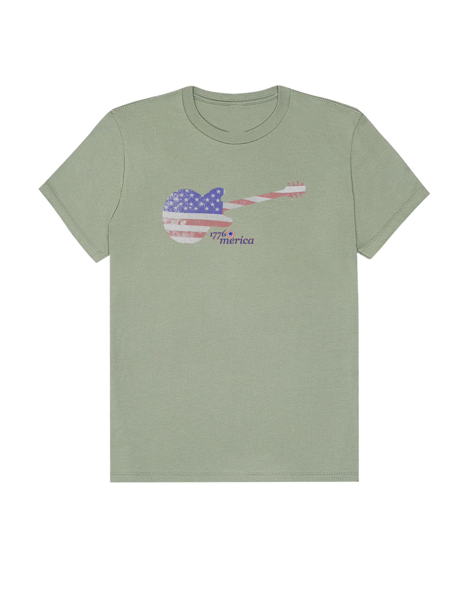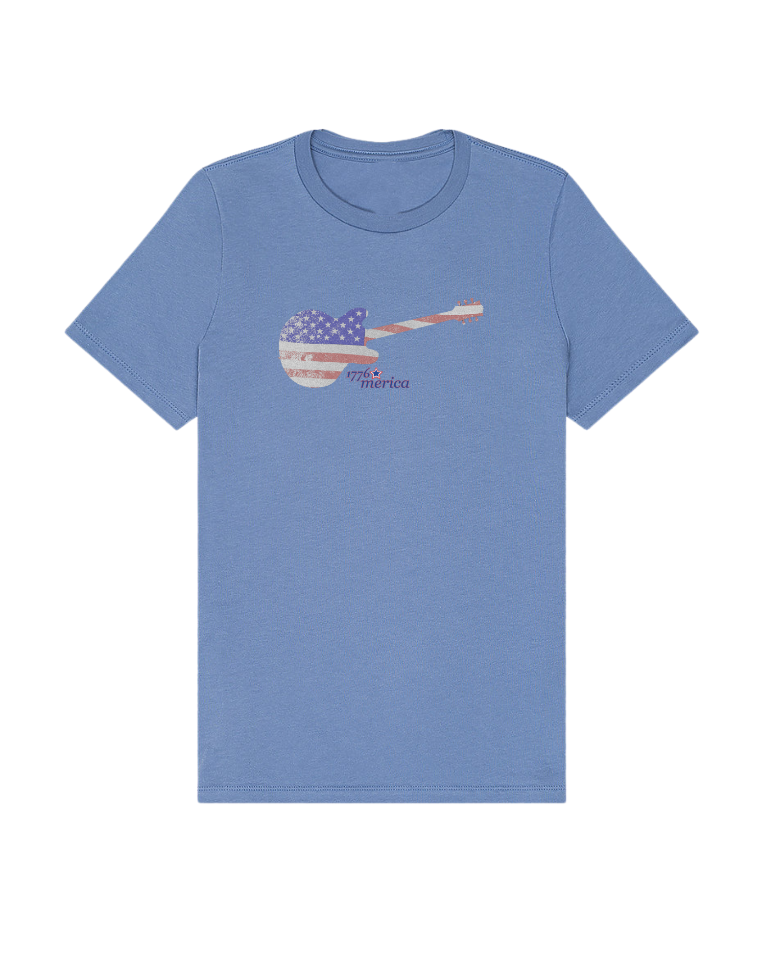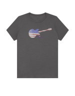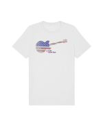 Part of our relaxed collection, this women’s fitted jersey t-shirt features a crew neck, short sleeves, and a contemporary, looser fit for effortless style. Made from super-soft 100% Airlume cotton, it feels amazing all day long with a super-smooth surface. This 1776 Merica tee features a vintage flag-print guitar—perfect for patriots who love their country loud.