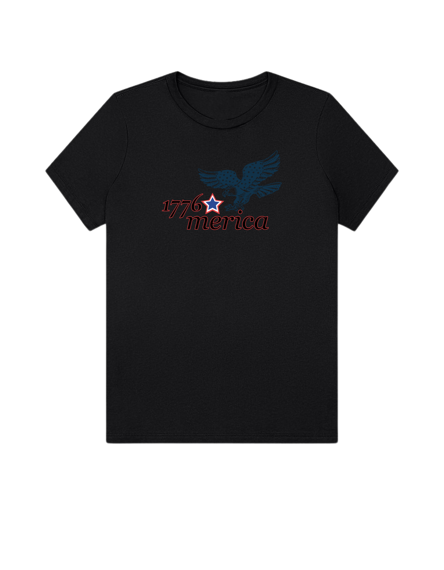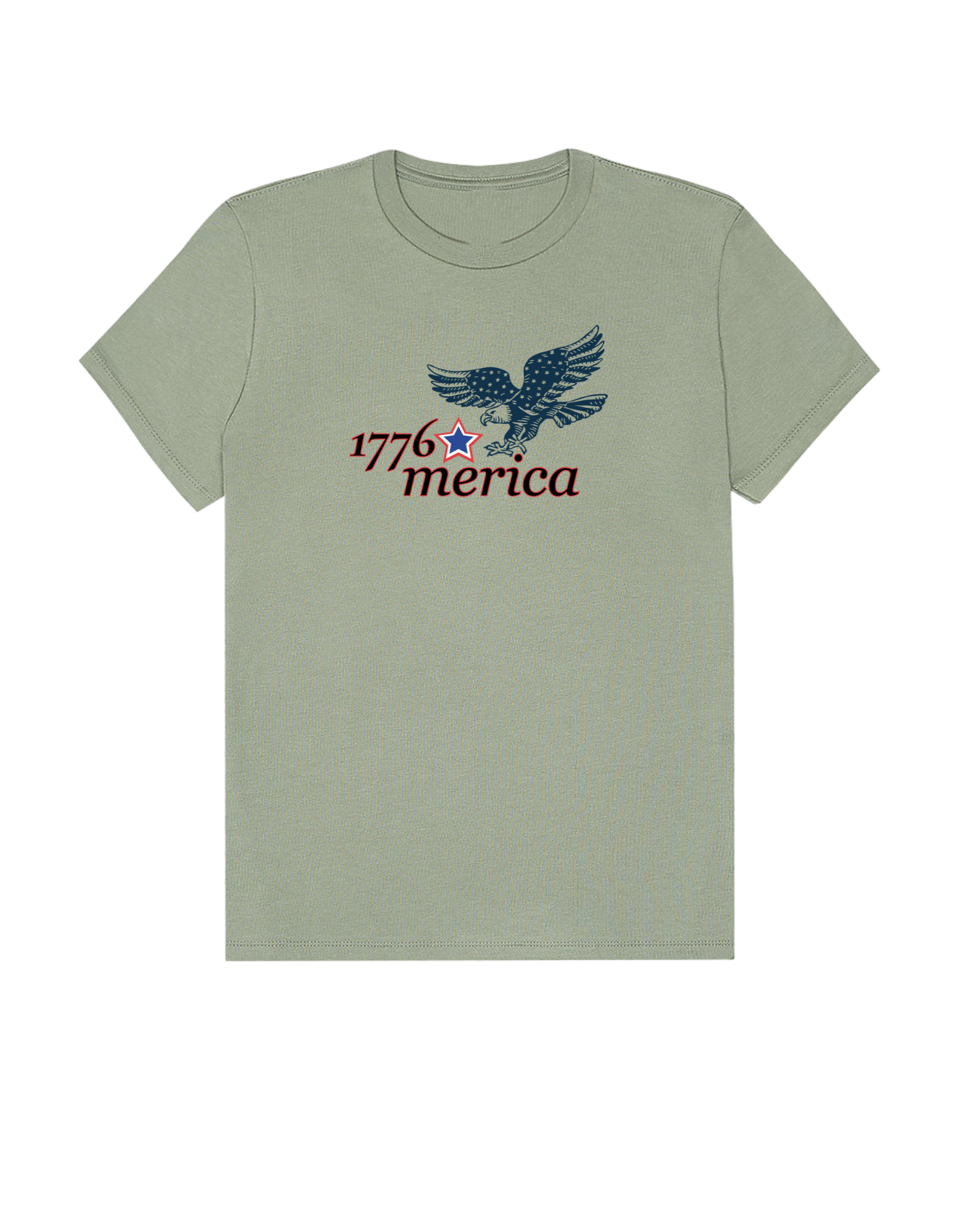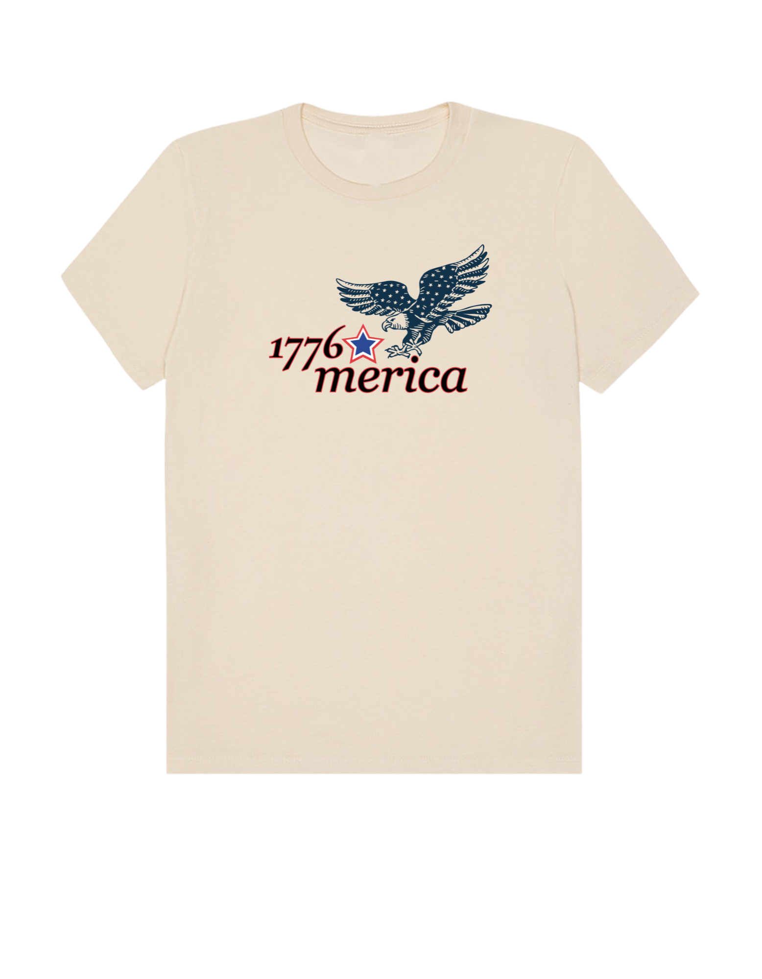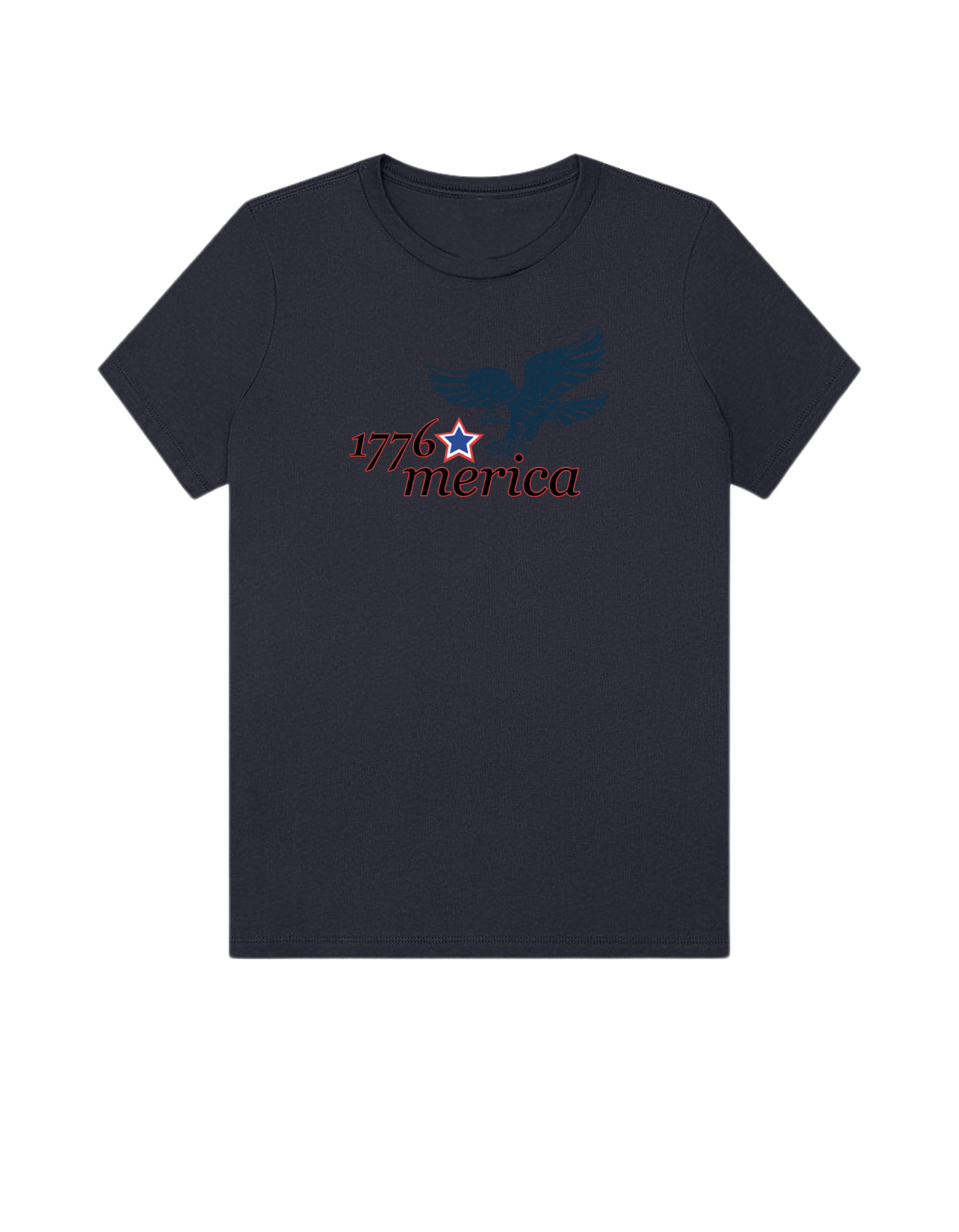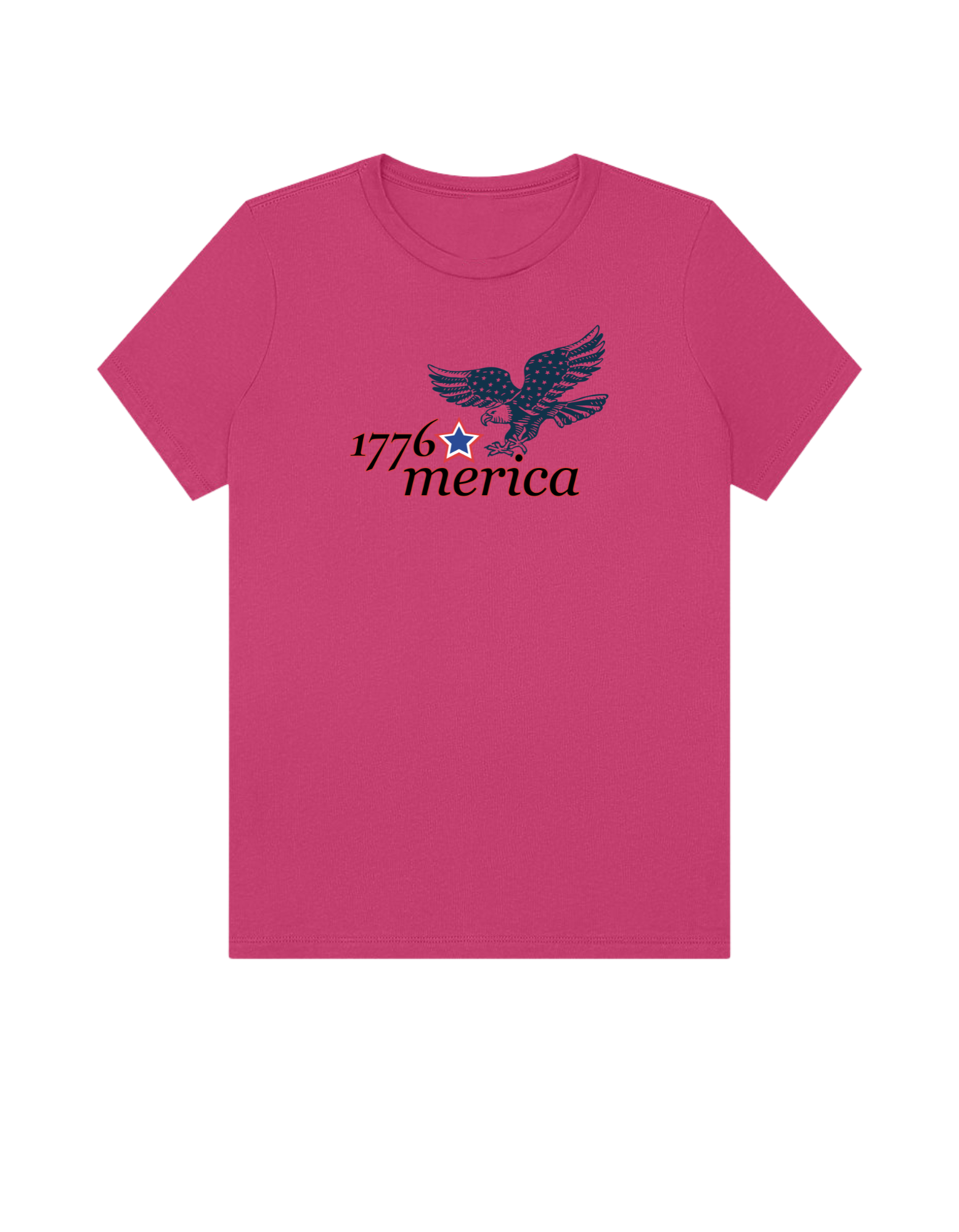 Part of our relaxed collection, this women’s fitted jersey t-shirt features a crew neck, short sleeves, and a contemporary, looser fit for effortless style. Made from super-soft 100% Airlume cotton, it feels amazing all day long with a super-smooth surface. This 1776 Merica tee features a bold eagle and vintage-inspired design, perfect for those who wear their freedom with pride.