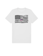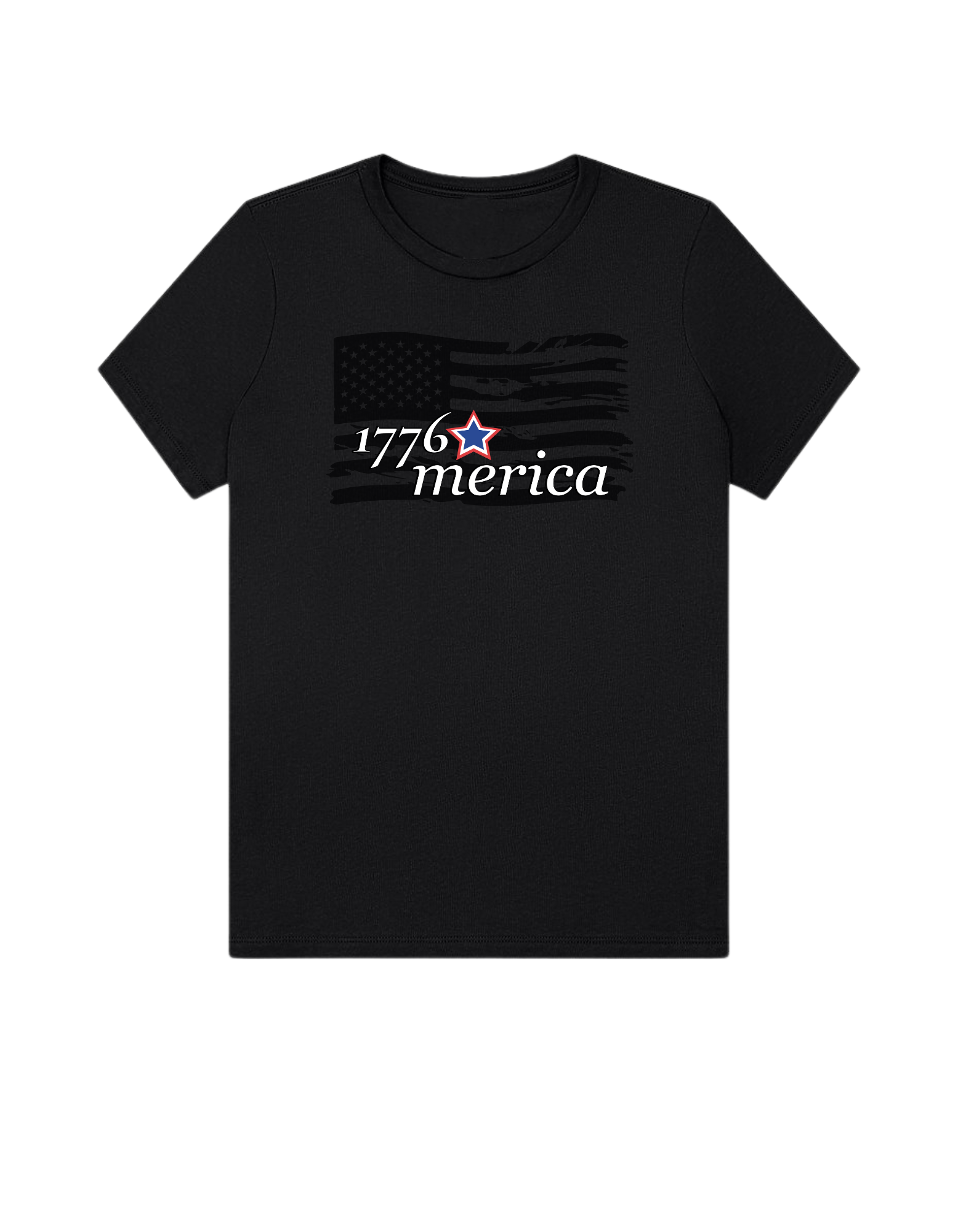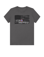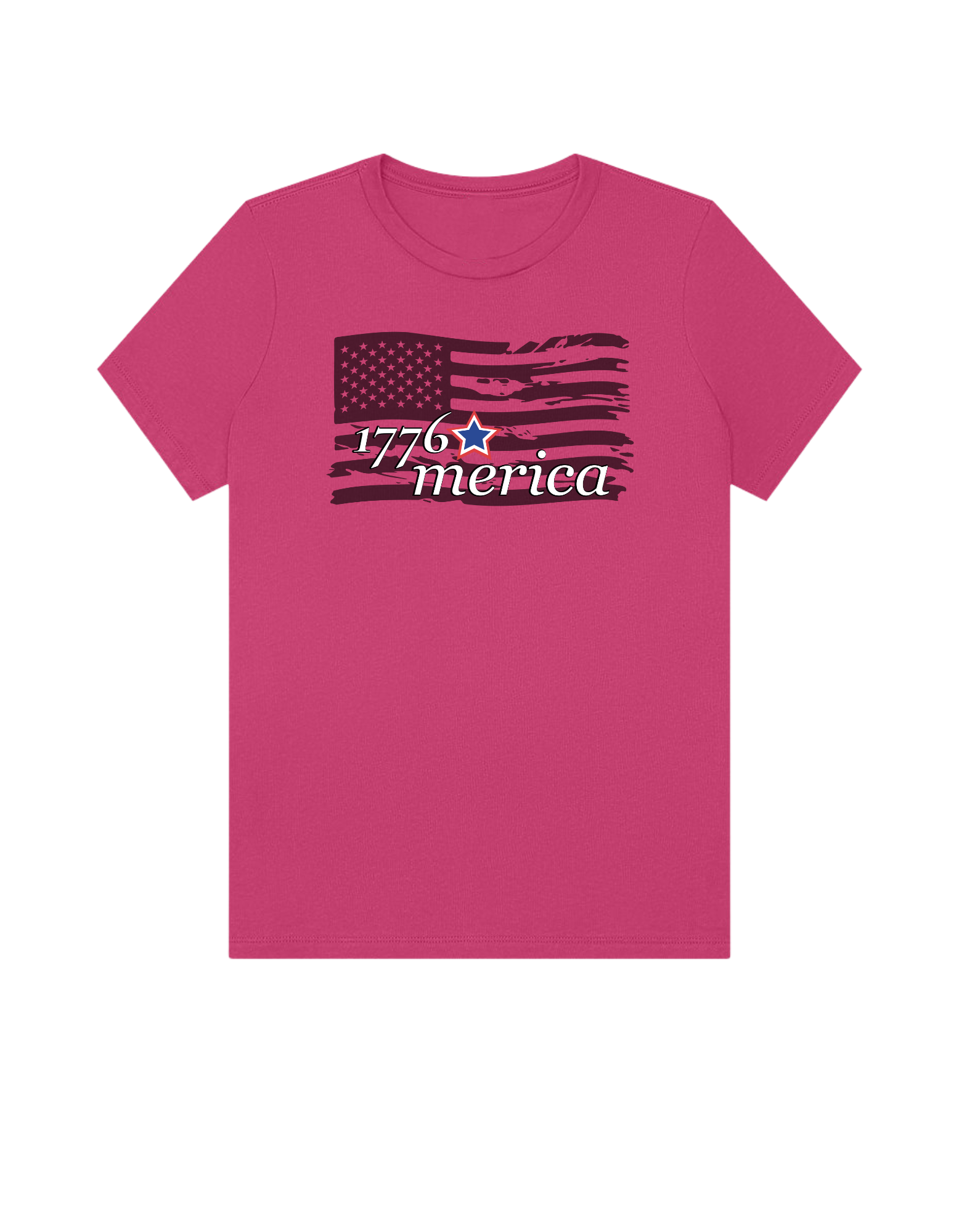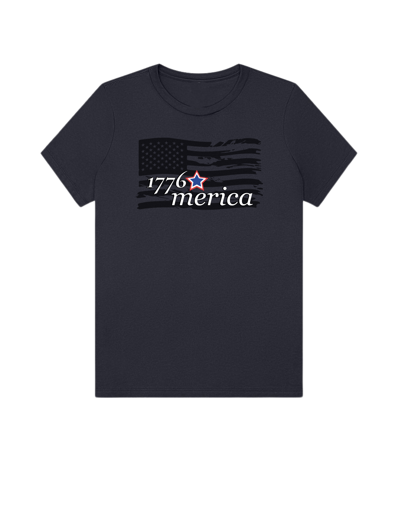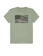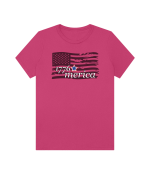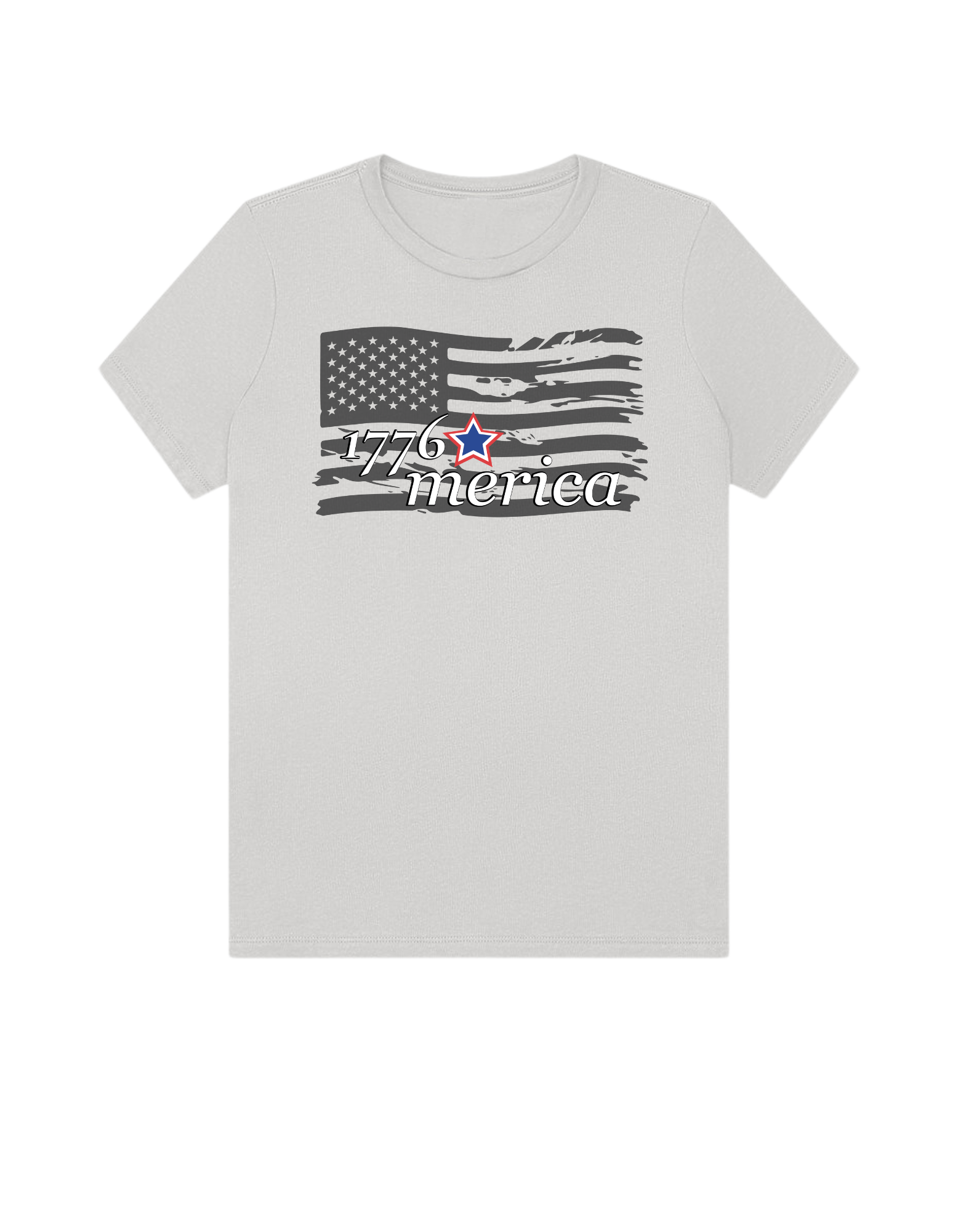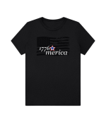 Part of our relaxed collection, this women’s fitted jersey t-shirt features a crew neck, short sleeves, and a contemporary, looser fit for effortless style. Made from super-soft 100% Airlume cotton, it feels amazing all day long with a super-smooth surface. This 1776 Merica tee features a distressed flag design for a bold, vintage Americana look.