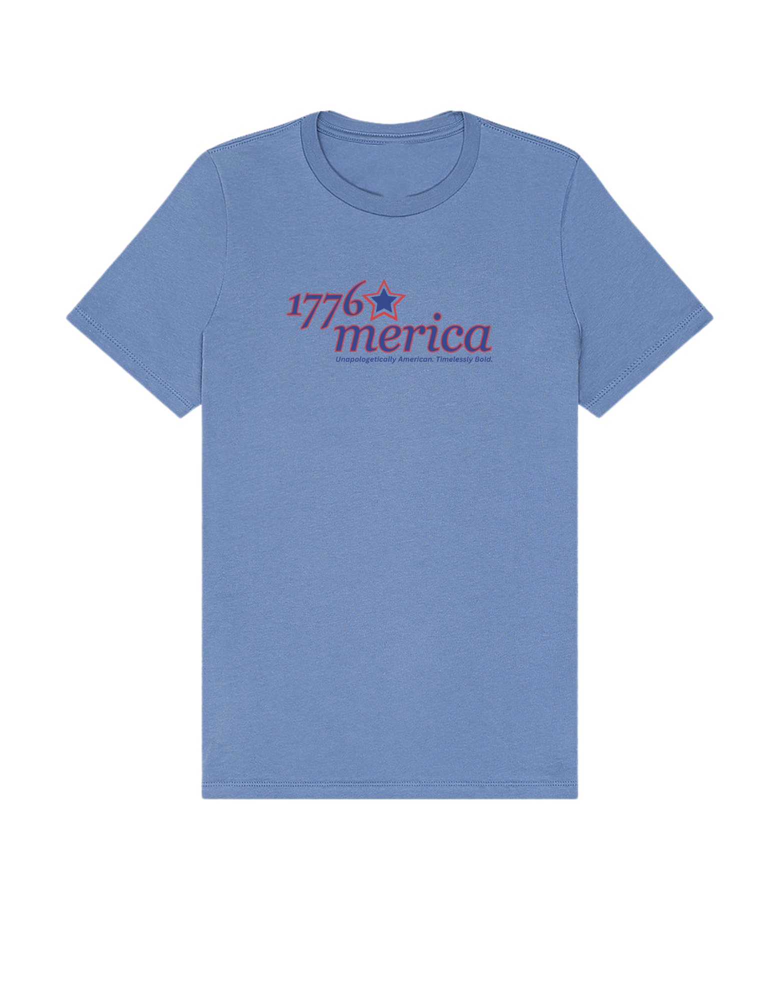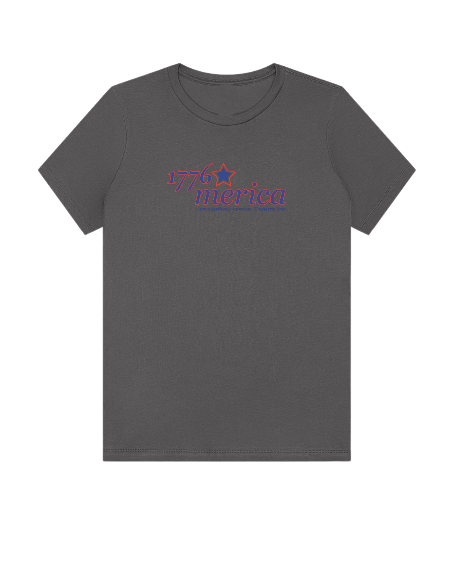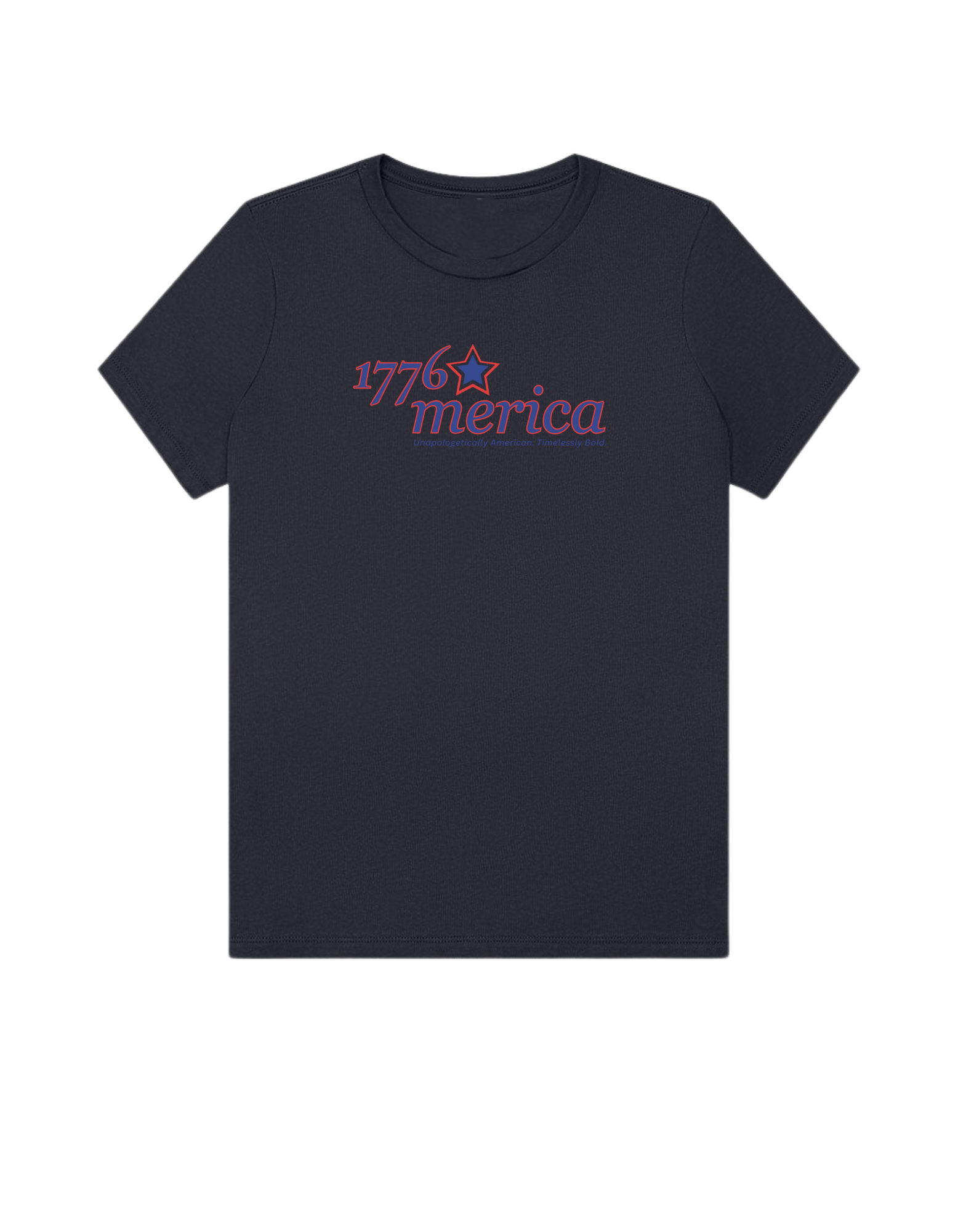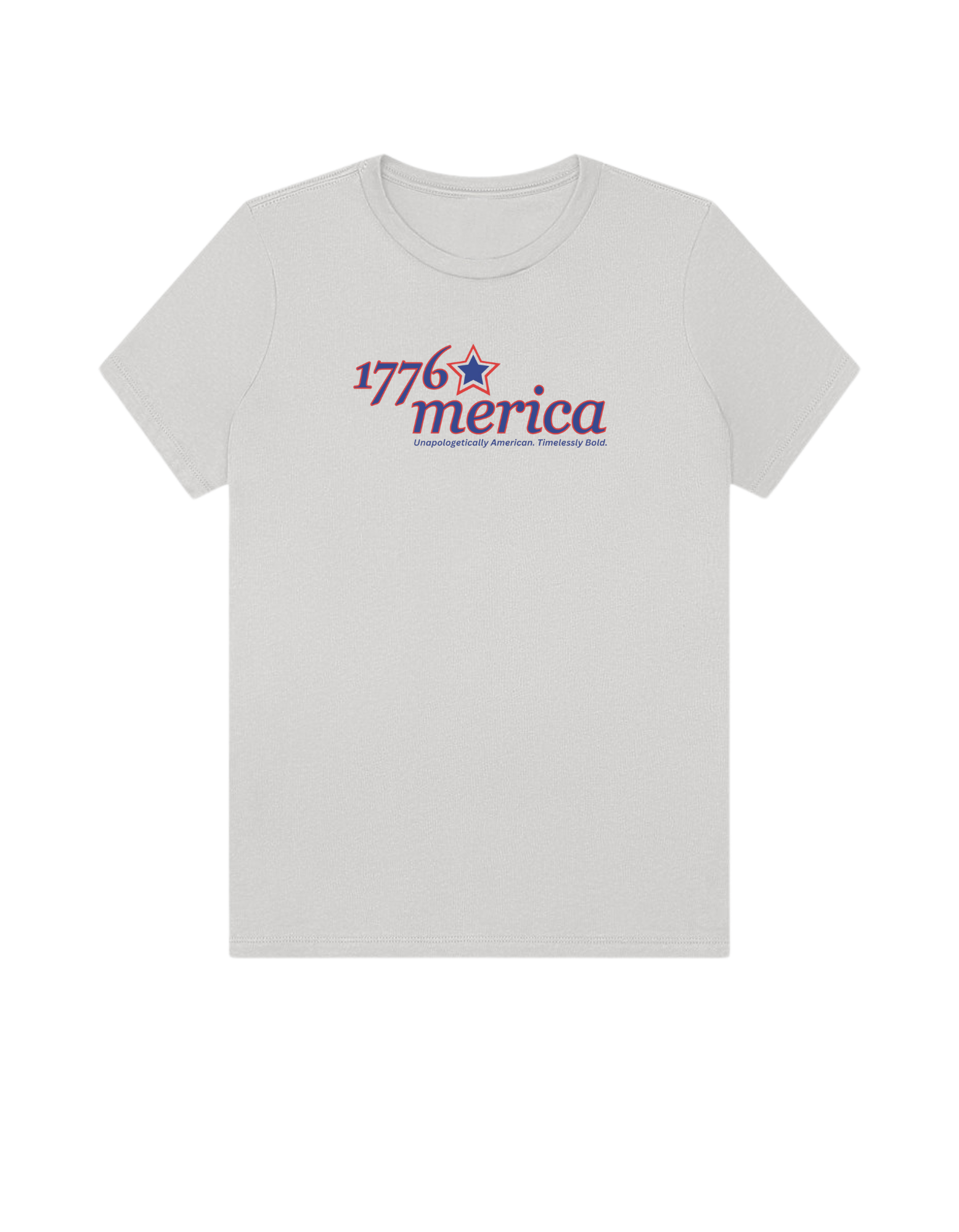 Part of our relaxed collection, this women’s fitted jersey t-shirt features a crew neck, short sleeves, and a contemporary, looser fit for effortless style. Made from super-soft 100% Airlume cotton, it feels amazing all day long with a super-smooth surface. This 1776 Merica tee embodies timeless patriotism with a bold, iconic design.